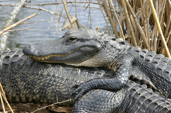 Above and below: An American Alligator in Okefenokee Swamp (5/6/2006)