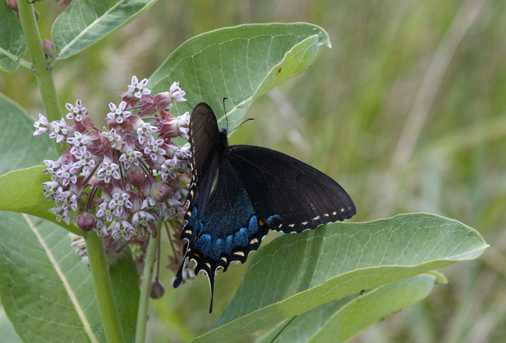 Below: The dark morph of Eastern Tiger Swallowtail nectaring on milkweed (P.G. Co., Maryland, 6/27/2009).