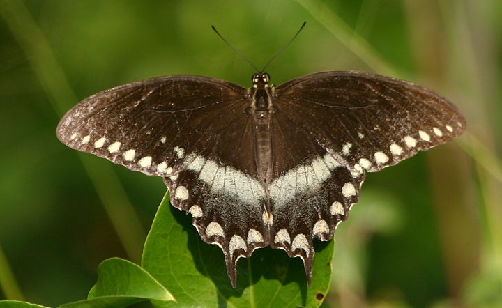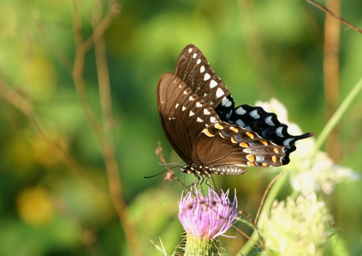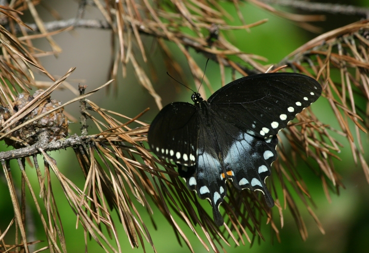Comments: Top photo taken at Soldier's Delight Natural Environment Area, Baltimore Co., Maryland (8/6/2005). Bottom photos taken in the Curtis Bay area of Anne Arundel Co., Maryland (8/17/2005). Similar species: Pipevine Swallowtail (which this species mimics), dark female E. Tiger Swallowtail, Red-spotted Purple.