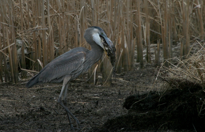 Below: A Great Blue Heron with an enormous catch!