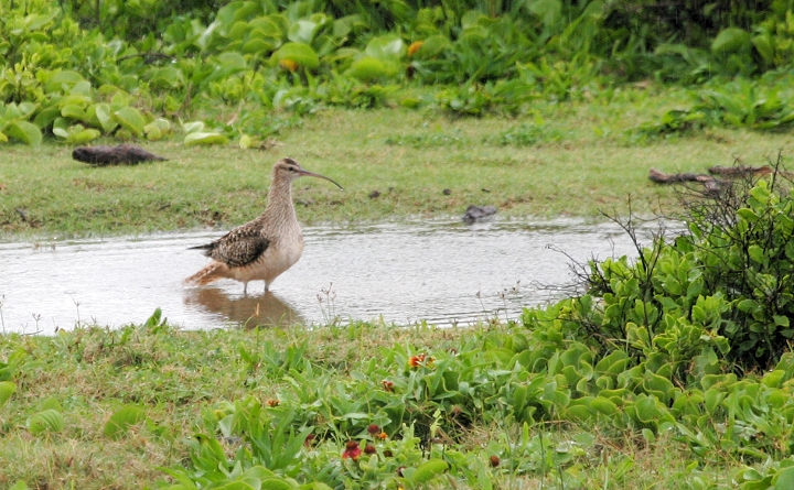 Above: One of eleven Bristle-thighed Curlews I observed on the North Shore of O'ahu today (3/16/2005). It's a distant shot taken in the pouring rain, but I'm just ecstatic to have seen them!