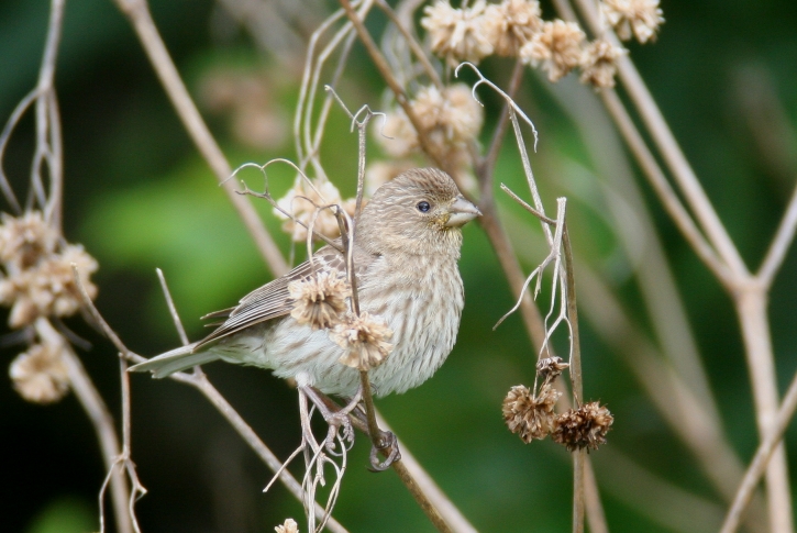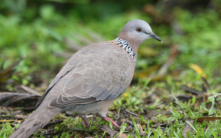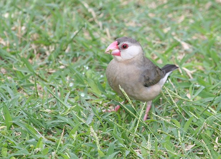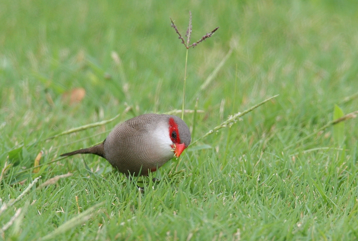 Below: A Common Waxbill feeding on grass seeds (introduced)