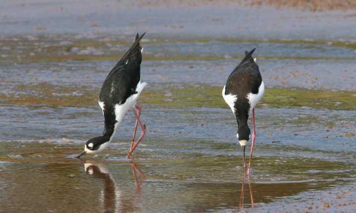 Above and below five: Hawaiian Stilts (Himantopus mexicanus knudseni)