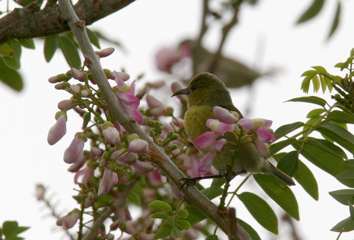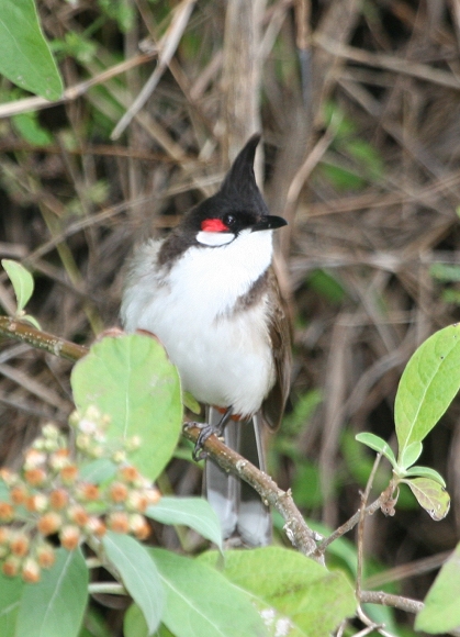 O'ahu sighting list so far (non-introduced in caps): HAWAIIAN DUCK (KOLOA) x MALLARD HYBRID, BUFFLEHEAD (1 hen), NORTHERN SHOVELER (8), NORTHERN PINTAIL (1 drake), Red Junglefowl (introduced by early Polynesians), WEDGE-TAILED SHEARWATER, RED-TAILED TROPICBIRD, MASKED BOOBY, BROWN BOOBY, RED-FOOTED BOOBY, GREAT FRIGATEBIRD, Cattle Egret, BLACK-CROWNED NIGHT-HERON, HAWAIIAN COMMON MOORHEN, HAWAIIAN COOT, PACIFIC GOLDEN-PLOVER, HAWAIIAN STILT, WANDERING TATTLER, BRISTLE-THIGHED CURLEW (11), RUDDY TURNSTONE, SANDERLING, SOOTY TERN (1000s at nesting colony), BLACK NODDY, WHITE TERN (COMMON FAIRY-TERN), Rock Pigeon, Spotted Dove, Zebra Dove, Rose-ringed Parakeet, Budgerigar (escapee), HAWAIIAN SHORT-EARED OWL (PUEO; endemic subspecies sandwichensis), Red-vented Bulbul, Red-whiskered Bulbul, Japanese Bush-Warbler, White-rumped Shama, Red-billed Leiothrix, Japanese White-eye, Northern Mockingbird, Common Myna, Saffron Finch, Red-crested Cardinal, Northern Cardinal, House Finch, Yellow-fronted Canary, O'AHU 'AMAKIHI, House Sparrow, Common Waxbill, Nutmeg Mannikin, Chestnut Munia, Java Sparrow. Mammals: HUMPBACK WHALE, Indian Mongoose. Insects: Long-tailed Pea-Blue, Gulf Fritillary, Monarch, Roseate Skimmer, Scarlet Skimmer, unid. Odonata (all introduced).