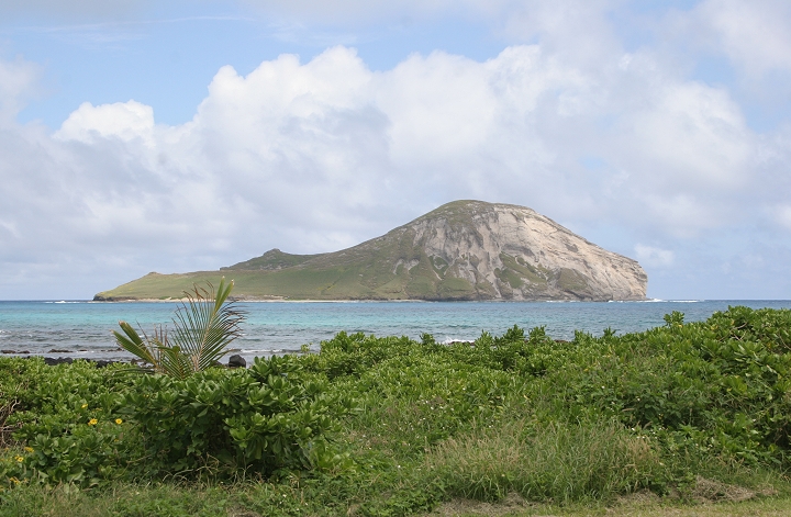 Below: Manana Island (or Rabbit Island), home to thousands of nesting Sooty Terns. An hour of study from the beach (yes, it's a rough hobby sometimes) led to my first sightings of a Brown Noddy and at least two Gray-backed Terns (3/19/2006).
