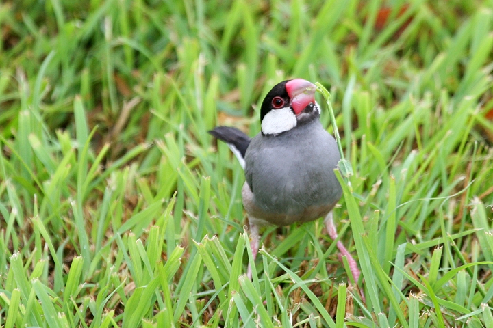 Below: An adult Java Sparrow in Waikiki, O'ahu (3/19/2006).