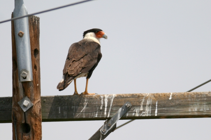 Below: A Crested Caracara scouting from a favored perch beside the highway.