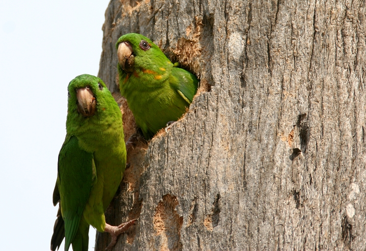 Below: A pair of happy homemakers. Green Parakeets near Old Fort Brown in Brownsville (4/23/2006).