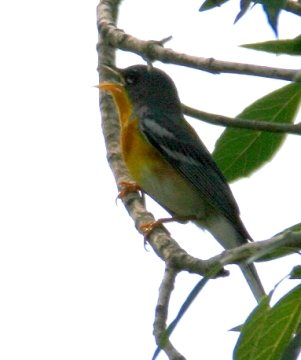Below: A distant photo of a presumed Tropical x Northern Parula hybrid at Santa Ana. (Willow 1 area, 4/22/2006).