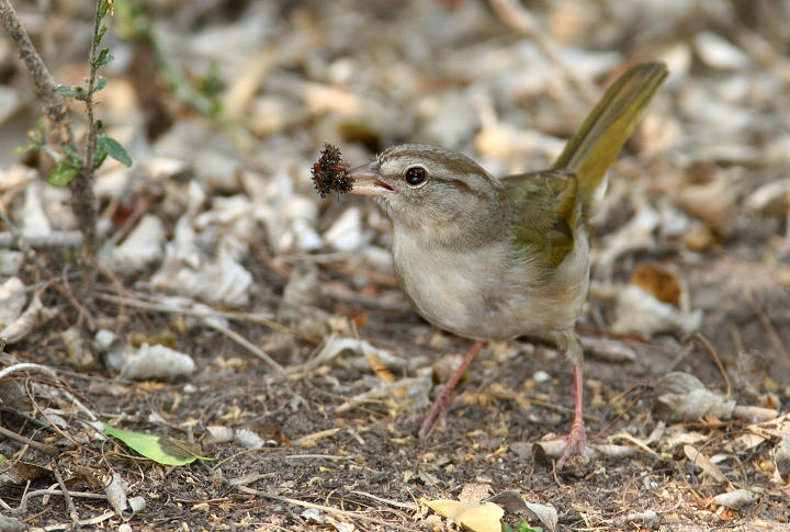 Below: Olive Sparrow with nesting material (4/22/2006).