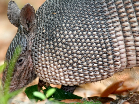 Below: Darn! I couldn't swap out the big lens quickly enough to zoom back from this armadillo, which was foraging along the roadside at Harris Neck NWR, GA (5/7/2006).