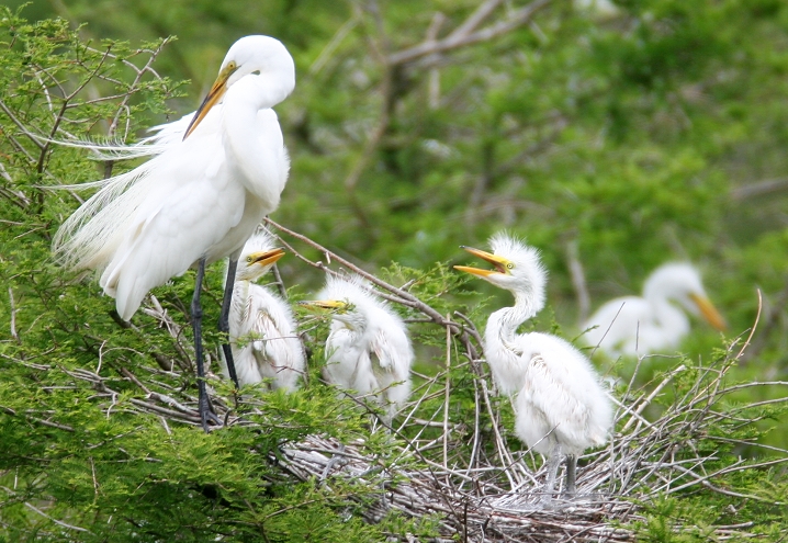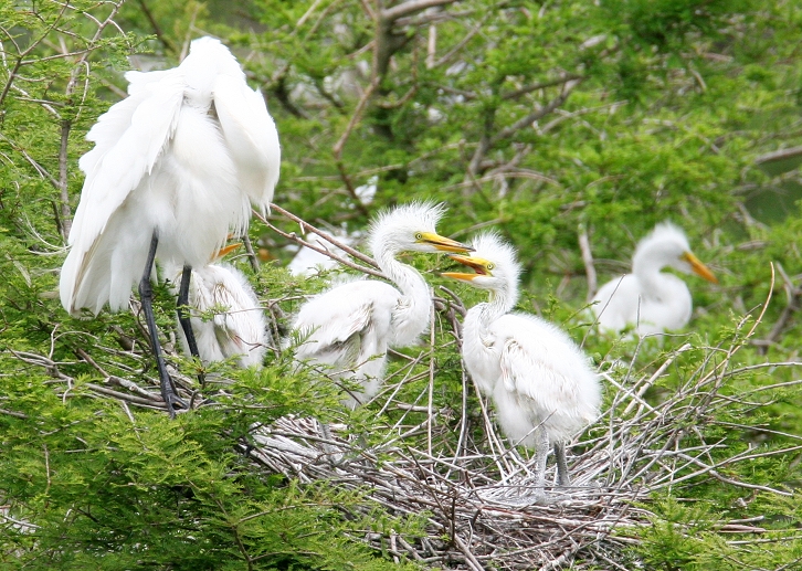 Above and below: Nesting Great Egrets at Harris Neck NWR, Georgia (5/7/2006).