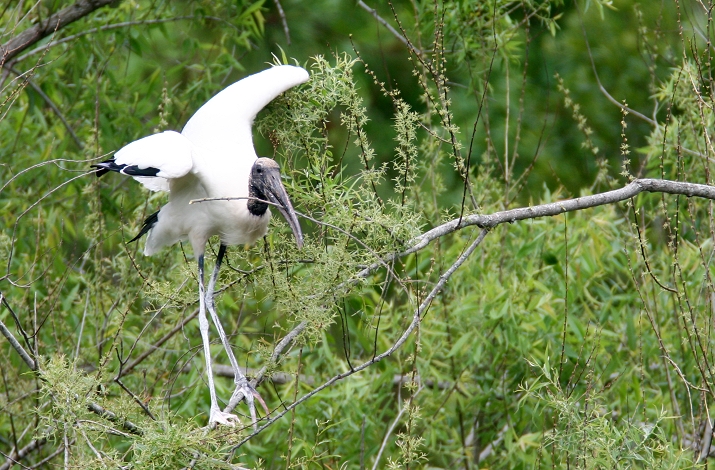 Below: A Wood Stork gathering nesting materials. Several hundred storks nest in this lovely refuge.