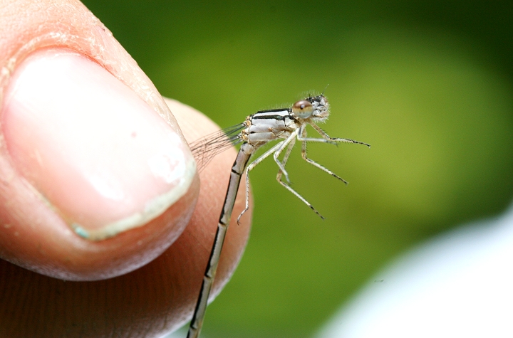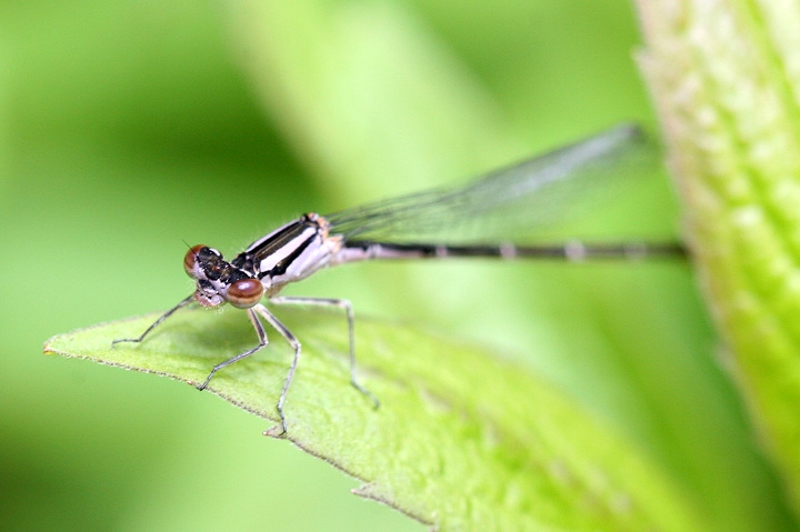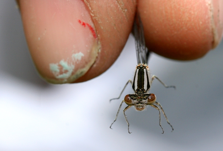 Below: A male Eastern Forktail with unusual split-stripe pattern on thorax.