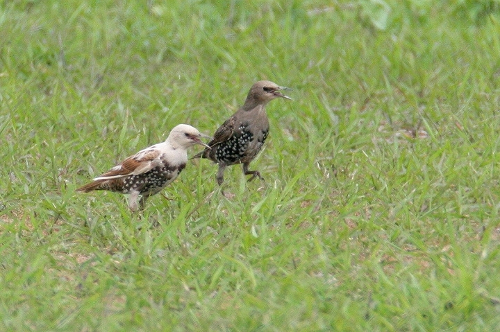 Below: A strange, probably partially leucistic juvenile starling at Blackwater NWR, Maryland (8/22/2006).