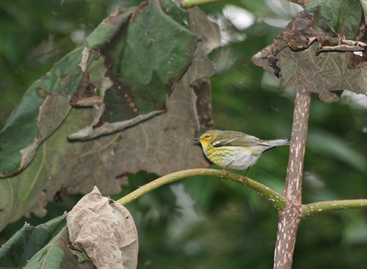 Below: A Cape May Warbler in the drizzling rain in Harford Co., Maryland (10/1/2006).