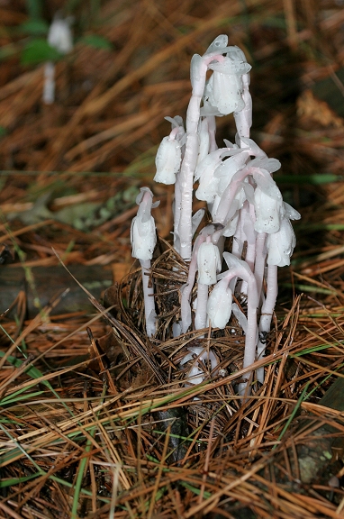Below: Indian Pipe (Monotropa uniflora) in western Wicomico Co., Maryland (10/1/2006). This plant contains no chlorophyll, so it draws energy only from nutrients in the soil.