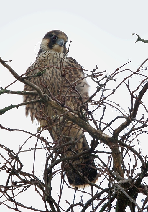 Below: A young Tundra Peregrine Falcon (F. p. tundrius) in Wicomico Co., Maryland (10/1/2006). "Juvenile tundrius has a pale eyebrow and larger pale area on side of face; underparts more finely streaked." (N.G. Field Guide to the Birds of N.A.)