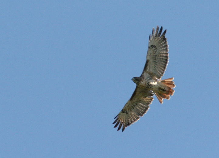 Below: An adult Red-tailed Hawk soars over Carroll Co., Maryland (10/8/2006).