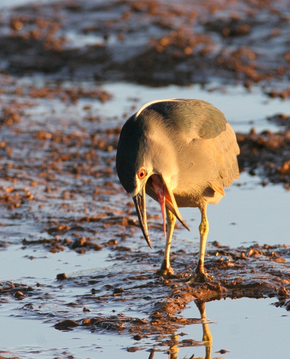 Below: A yawning adult Black-crowned Night-heron at dawn on O'ahu (2/4/2007).