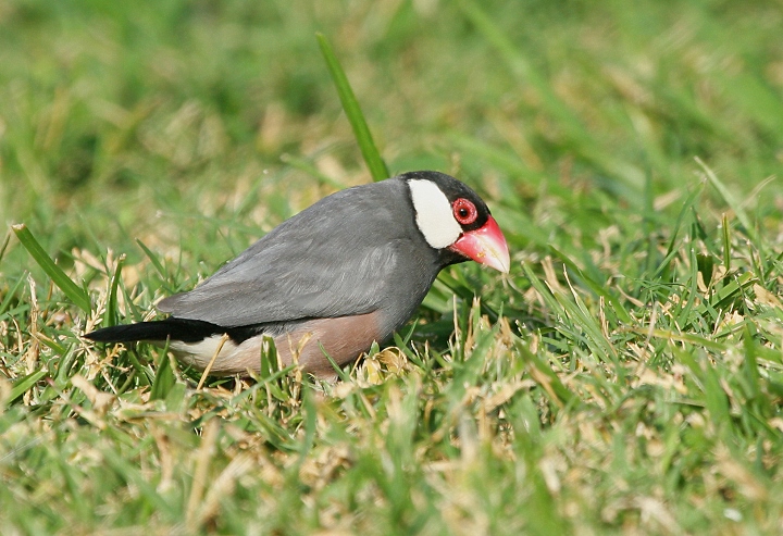Below: An adult Java Sparrow in Kapiolani Park on O'ahu (2/2007).