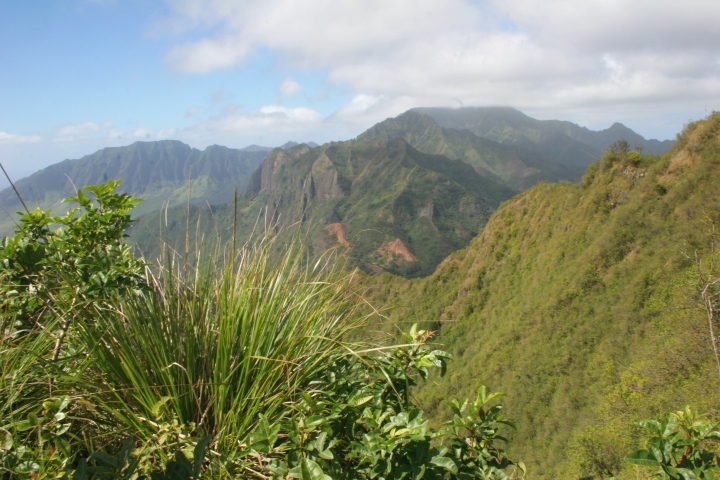 Below: View from a peak above Kolekole Pass in O'ahu's Waianae range (2/3/2007).