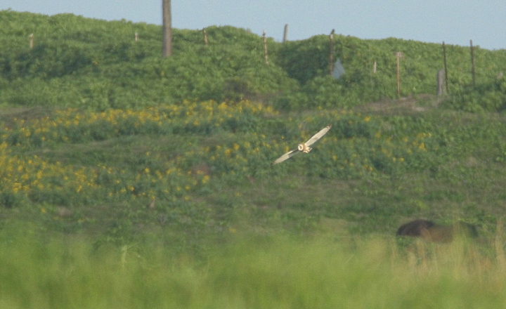 Below: A Pueo - the native Hawaiian subspecies of Short-eared Owl - hunts at dusk on O'ahu (2/8/2007).