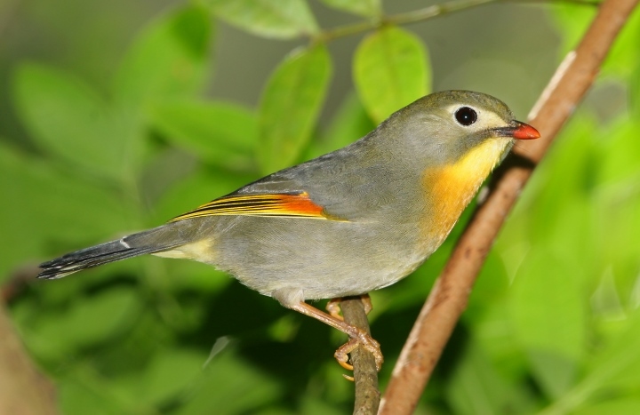 Below: A curious Red-billed Leiothrix checks me out in a mixed O'ahu forest (2/4/2007).