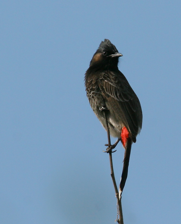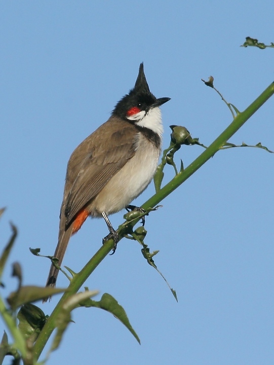 Below: A Red-whiskered Bulbul poses at dawn (2/3/2007).