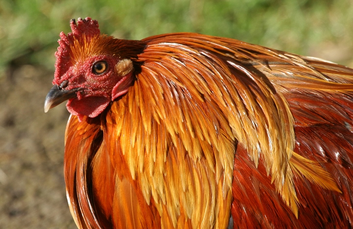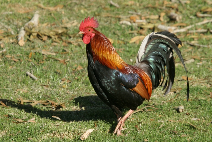 Below three: The Red Junglefowl of Kauai's rainforests are descendants of the "Moa" brought to Hawaii by early Polynesian settlers (2/10/2007).