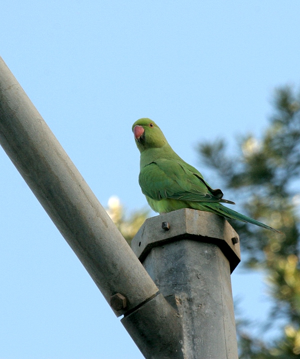 Below: A Rose-ringed Parakeet along the Tantalus Loop on O'ahu, Hawaii (2/3/2007).