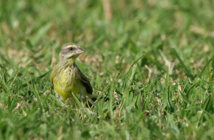 Below: Adult and female/juvenile Yellow-fronted Canaries in Kapiolani Park, O'ahu (2/5/2007).