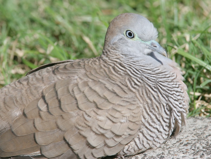 Below: A Zebra Dove resting near Punchbowl Cemetery on O'ahu (2/2/2007).