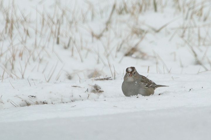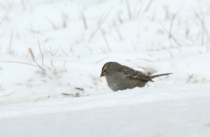 Below: An immature Gambel's White-crowned Sparrow (Z. l. gambelii) found west of Butlertown, Kent Co., Maryland (2/25/2007).