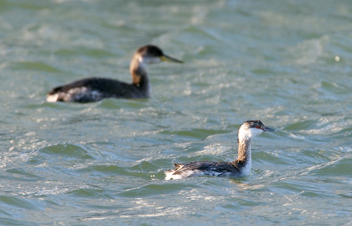 Below: A nice comparison of a Horned Grebe and a Red-necked Grebe (2/24/2007).