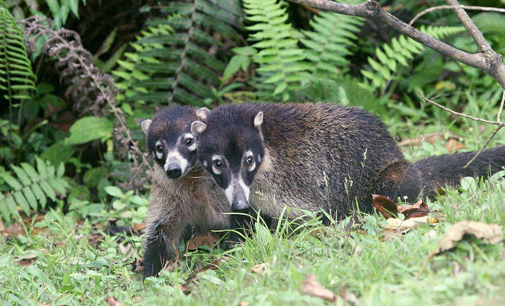 Below: A pair of curious Coatimundis (Coatis for short) check out a group of curious gringos (Santa Elena).