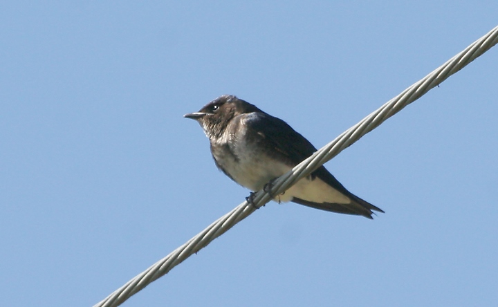 Below: A Gray-breasted Martin rests on a power line near Monteverde.