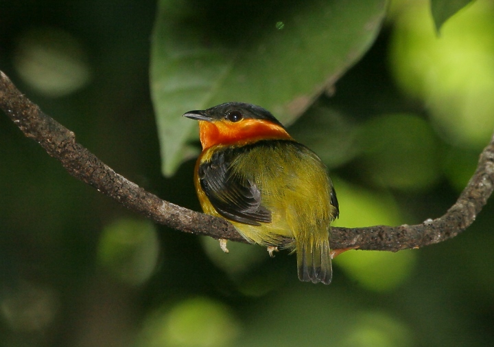 Above: An Orange-collared Mannakin takes a break near a lek at Carara.