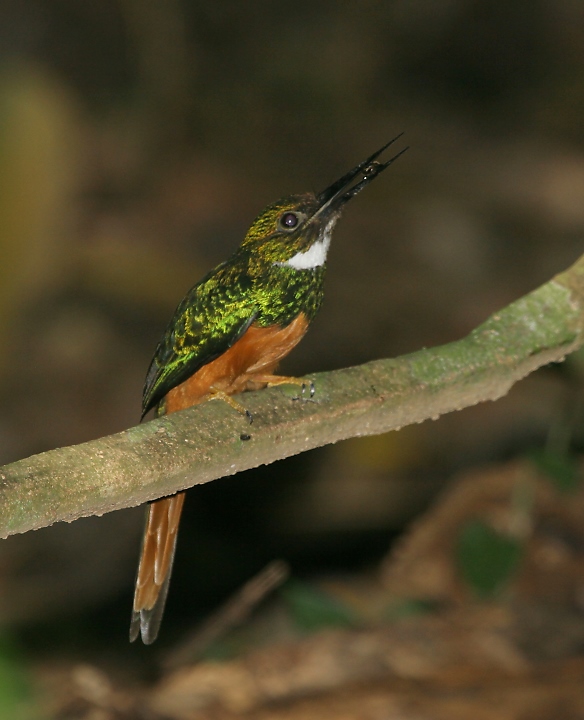 Below: The Rufous-tailed Jacamar waits patiently from a perch, then quickly bursts forward to catch a flying insect. It completes a graceful arc, landing in the same spot where it started (Carara).