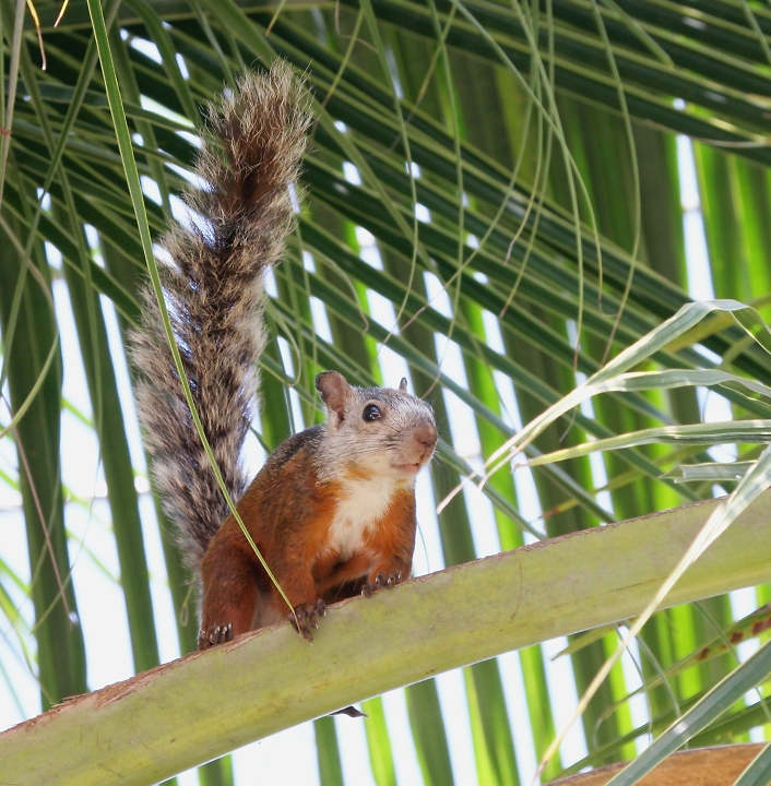 Below: A Variegated Squirrel working its way through the palms in Jaco.
