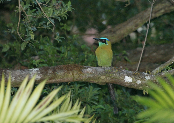Below: A distant shot of a Blue-crowned Motmot near Monteverde.