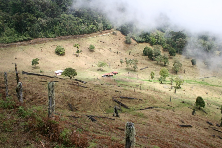 Below: The cloudforest temporarily reclaims a cleared area near Cerro de la Muerte as Blue-and-white Swallows hunt below their roadside nesting cavities.