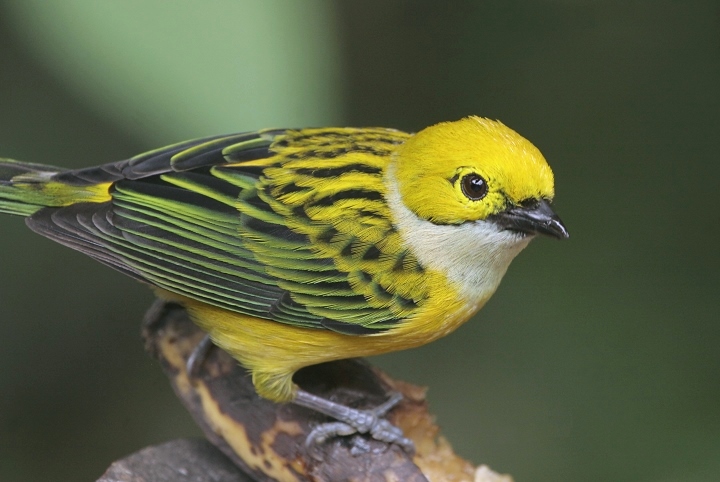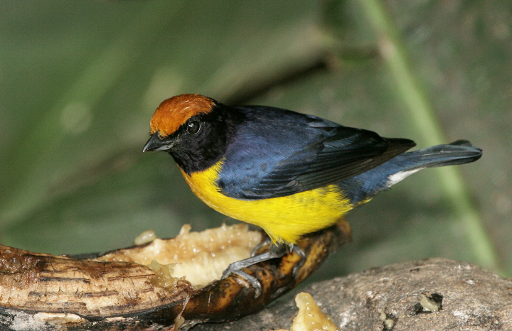 Below: Another beauty lured to the bananas near the La Paz waterfalls, a Tawny-capped Euphonia.