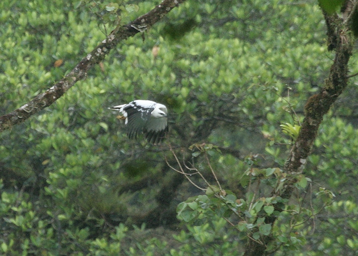 Below two: Pardon the distant shots (in the rain), but this beautiful White Hawk was such an exciting find that I would have posted images of a white dot. (Socorro)