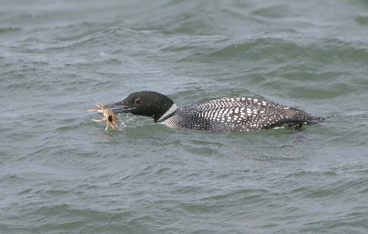 Below: A Common Loon molting into breeding plumage, with prey, at the Indian River Inlet, Delaware (4/7/2008).