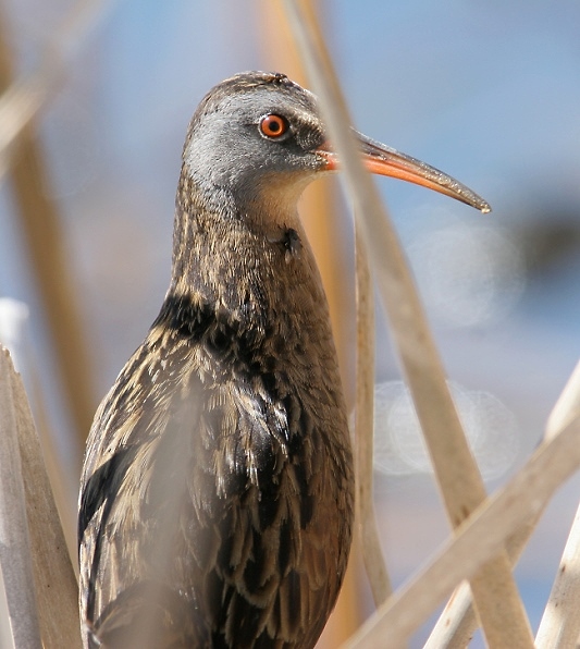 Below: I would complain about the cattail in this Virginia Rail's face, but it IS a rail after all. Photographed in Frederick Co., Maryland (4/22/2007).