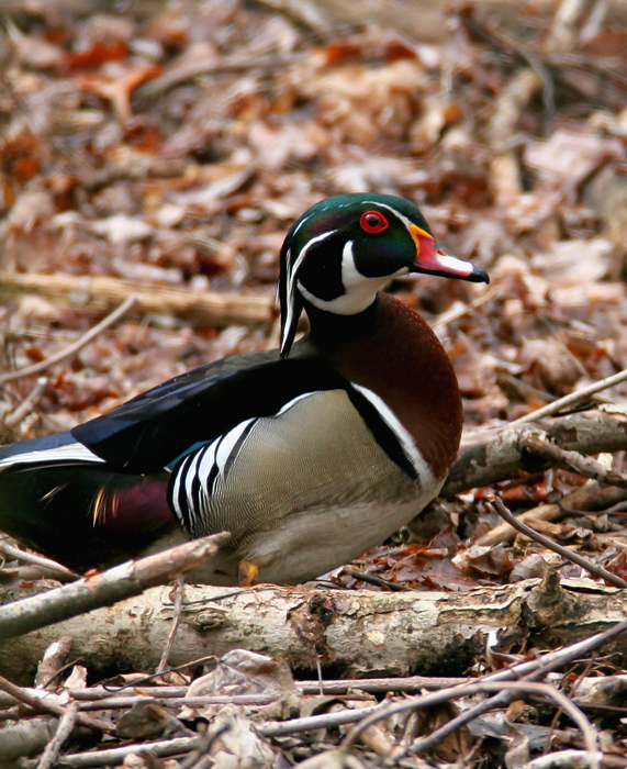 Below: A drake Wood Duck at Bombay Hook NWR, Delaware (4/7/2007).