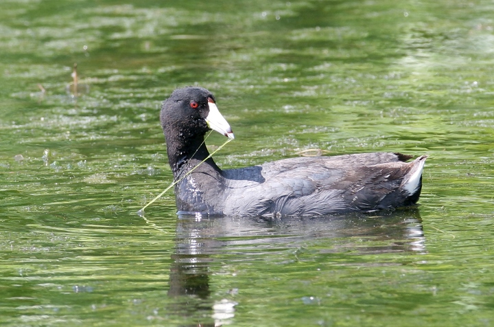 Below: An American Coot feeds on tiny invertebrates on a Frederick Co. pond (5/20/2007).