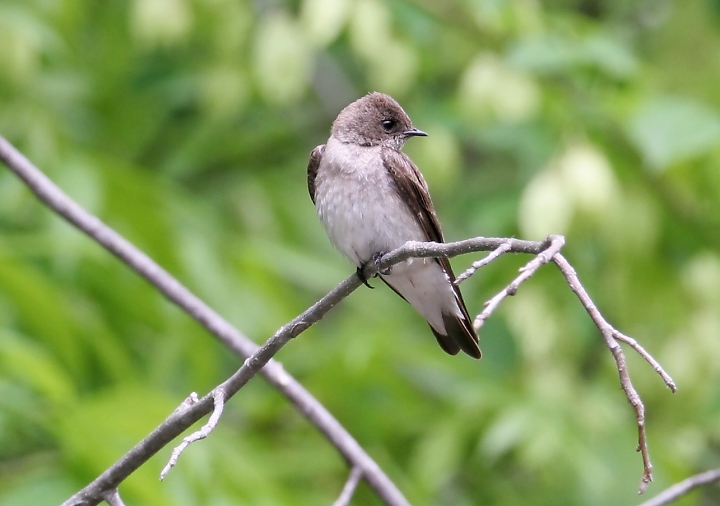 Below: A Northern Rough-winged Swallow near its nesting cavity on a bank of the Patapsco River, Howard Co., Maryland (5/20/2007).