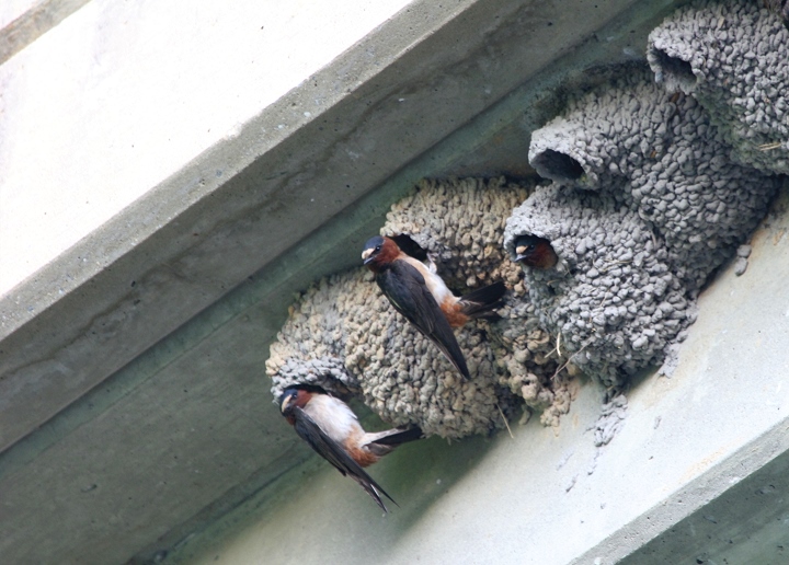 Below: Several of the 40 active Cliff Swallow nests on a Carroll Co. bridge (6/17/2007).